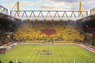 Wirklich süß: Die Südtribüne im Westfalenstadion hat ihr Herz für den Stil von Diddl-Mäusen und Kitschpostern entdeckt. In einer tollen Choero brachten die Dortmunder Fans ein rotes Herz zustande.